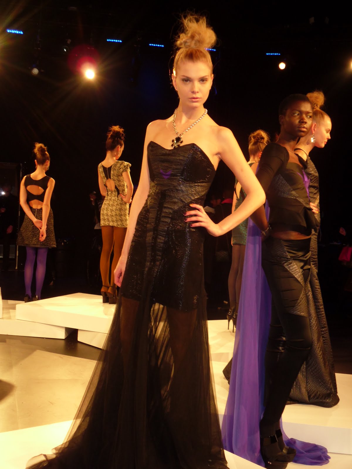 The GUiSHEM F/W 2011 collection by Guatemala based designer Guillermo Jop was shown during New York Fashion Week. The collection focused mainly on dark coloured pieces with reptilian textures in geometric cuts. Bright leggings gave a pop of colour to the mostly black collection. The futuristic shapes and cuts in this line reminded me of super hero attire made for any woman looking to conquer the world one dress at a time.